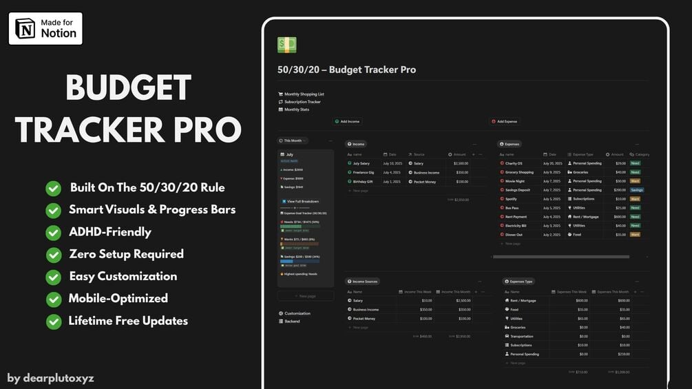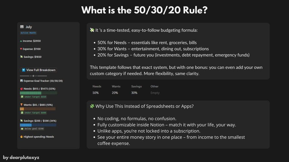 Struggling to manage your money? This Notion template simplifies your entire financial life using the 50/30/20 budgeting method — one of the most effective systems for long-term financial health.
